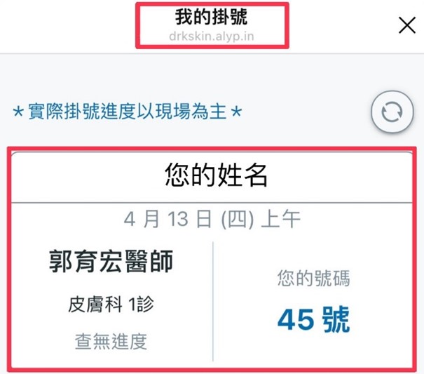 若需要取消掛號請點選紅字【取消掛號】(如下圖)