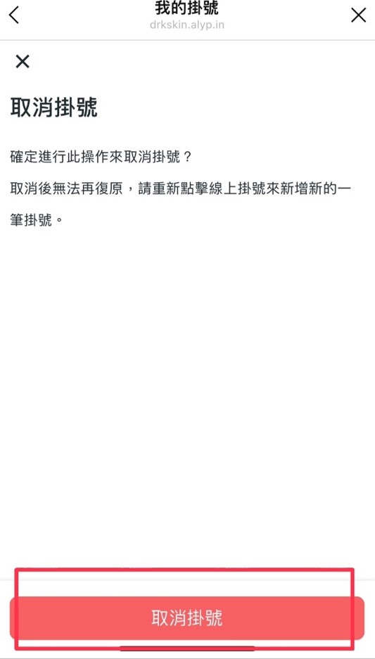 與您再次確認,若確定取消請點選紅色框框【取消掛號】(如下圖)