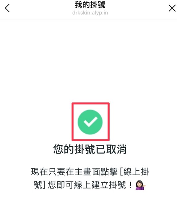 恭喜您的預約掛號已【成功取消】(如下圖)